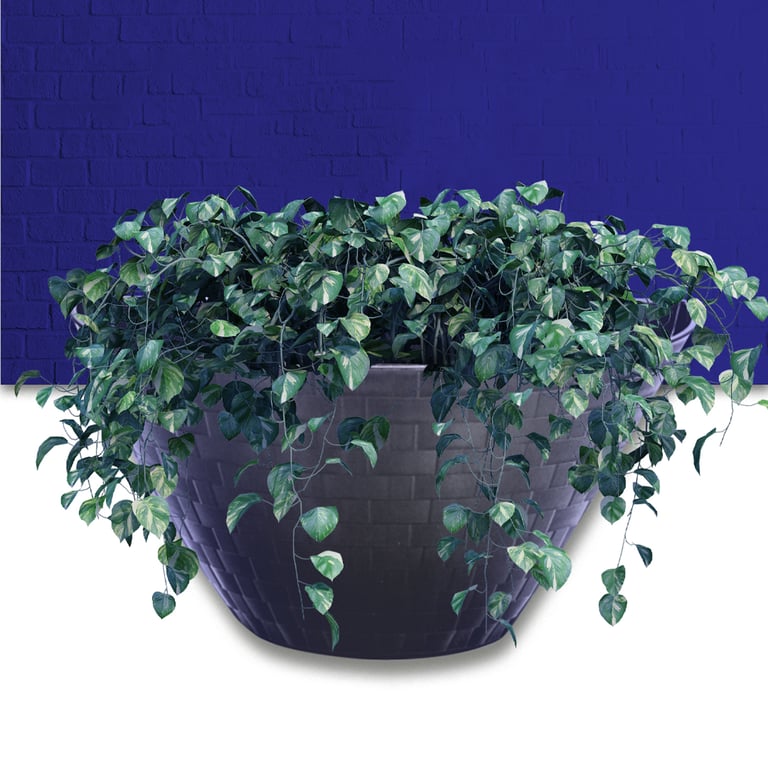 VASO PLÁSTICO 17X28X14 CM PAREDE RATTAN PRETO