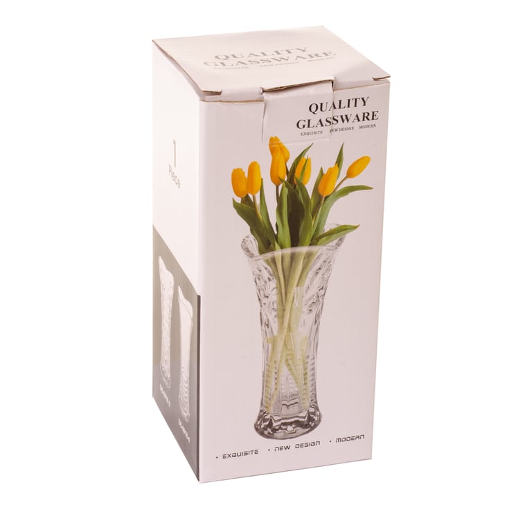 VASO VIDRO 18X8 CM RELEVOS BORDA ONDULADA AFUNILADO