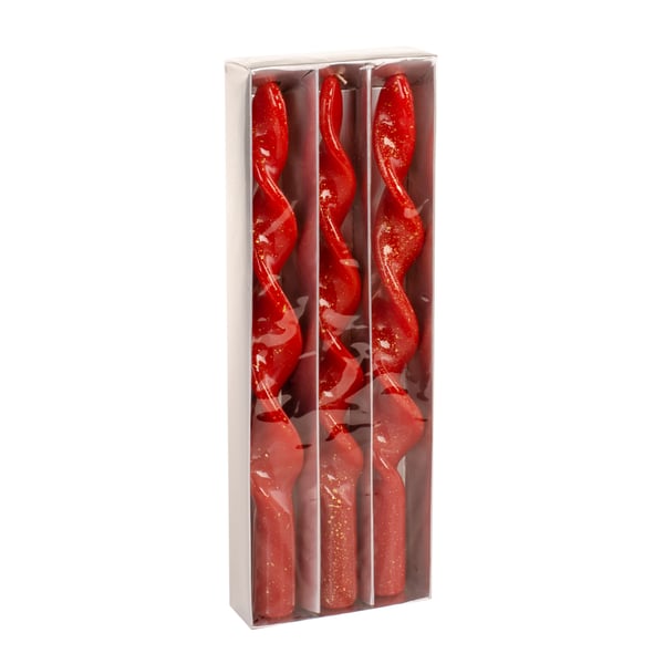 VELA 25 CM TORNEADA 3 PEÇAS VERMELHA