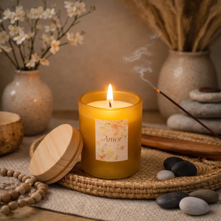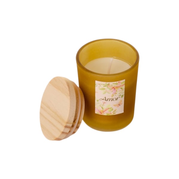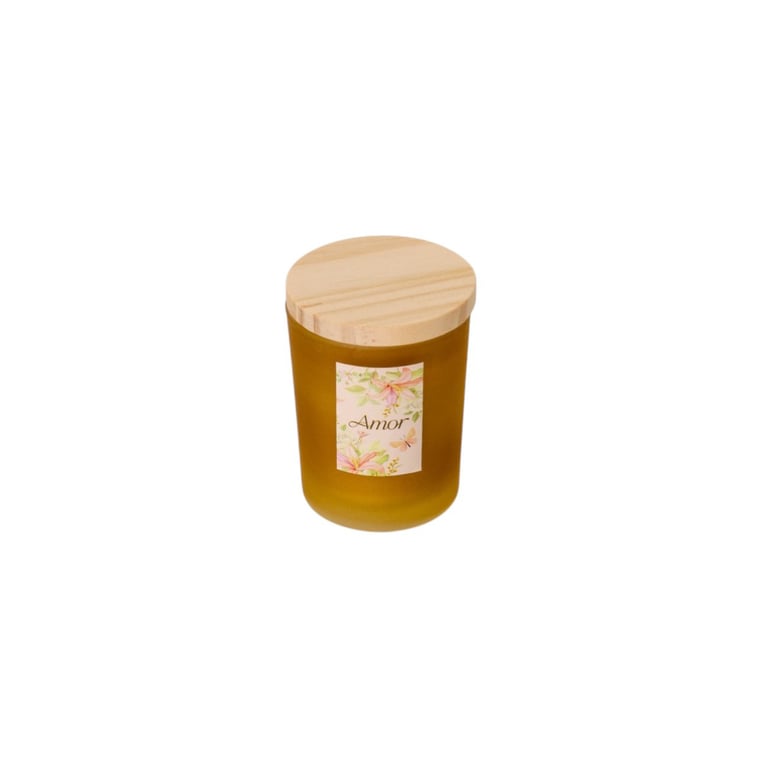 VELA AROMÁTICA 7X5 CM PALAVRA CASTIÇAL VIDRO COM TAMPA MADEIRA